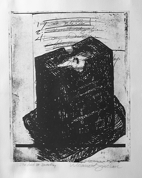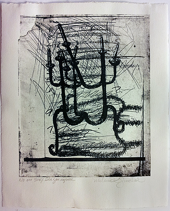 Printmaking was my undergraduate minor, and I almost had enough credits for a double major. I changed my major back and forth from painting to printmaking so many times I am sure that the Dean’s office never wanted to see me again. I finally chose painting over print because my instructor at that time, Kim Bauer, helped me understand that I was a painter. I was a painter who worked ideas out in print and then took them to another level in my work with paint. These days I work ideas out on my computer, changing object placements, playing with color and texture, but I still sketch some things out. Drawing and mark making satisfy something in me, sometimes I just need that pen in my hand.